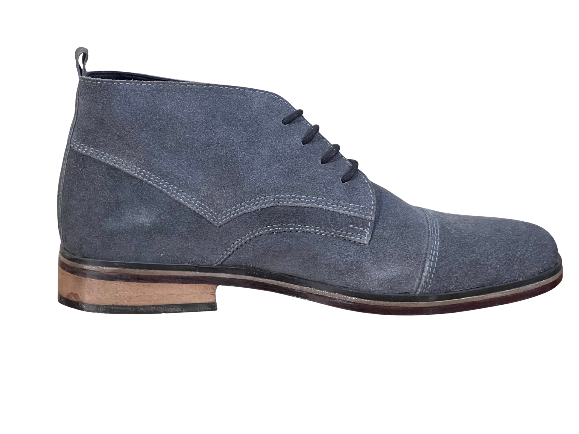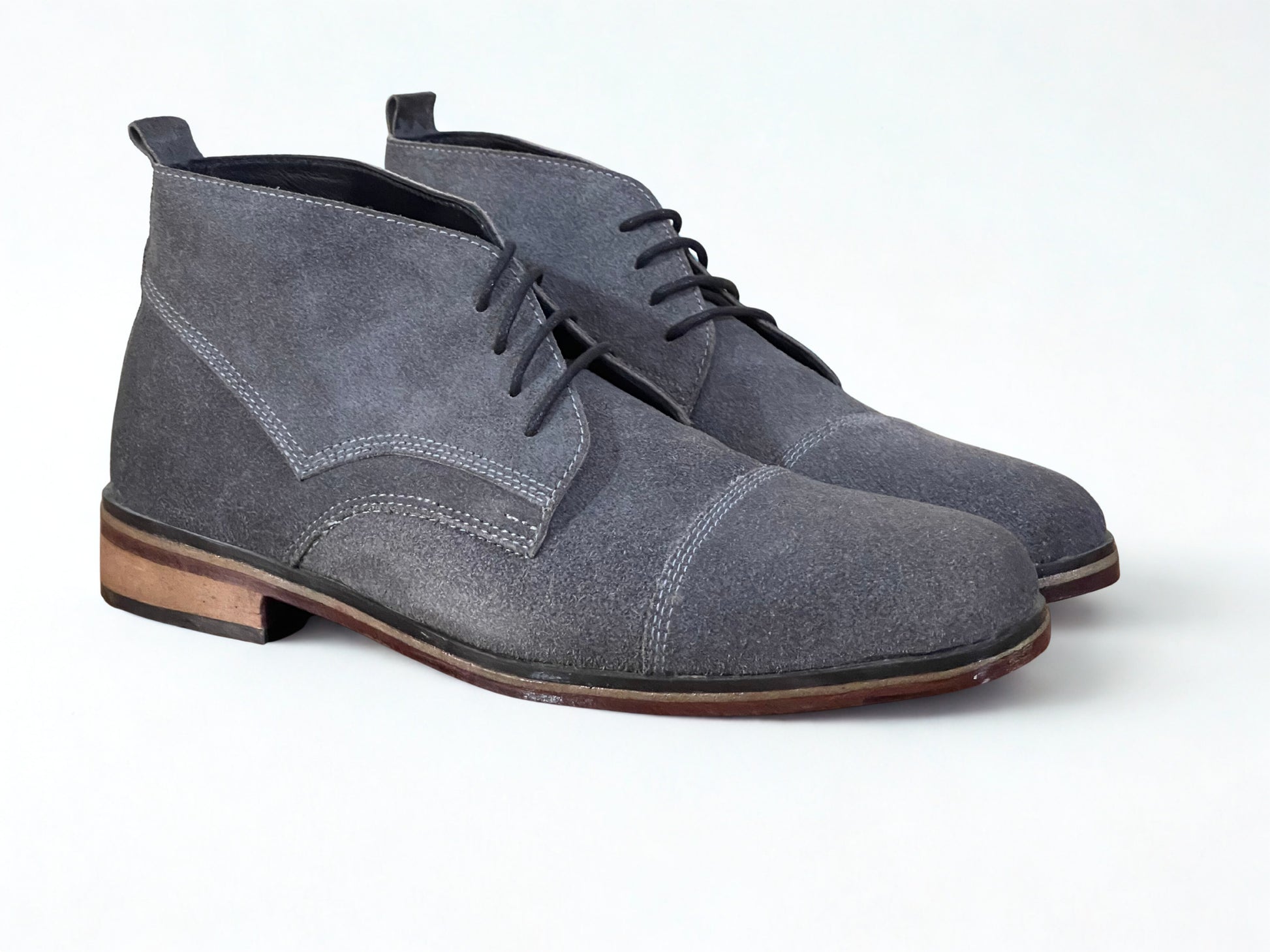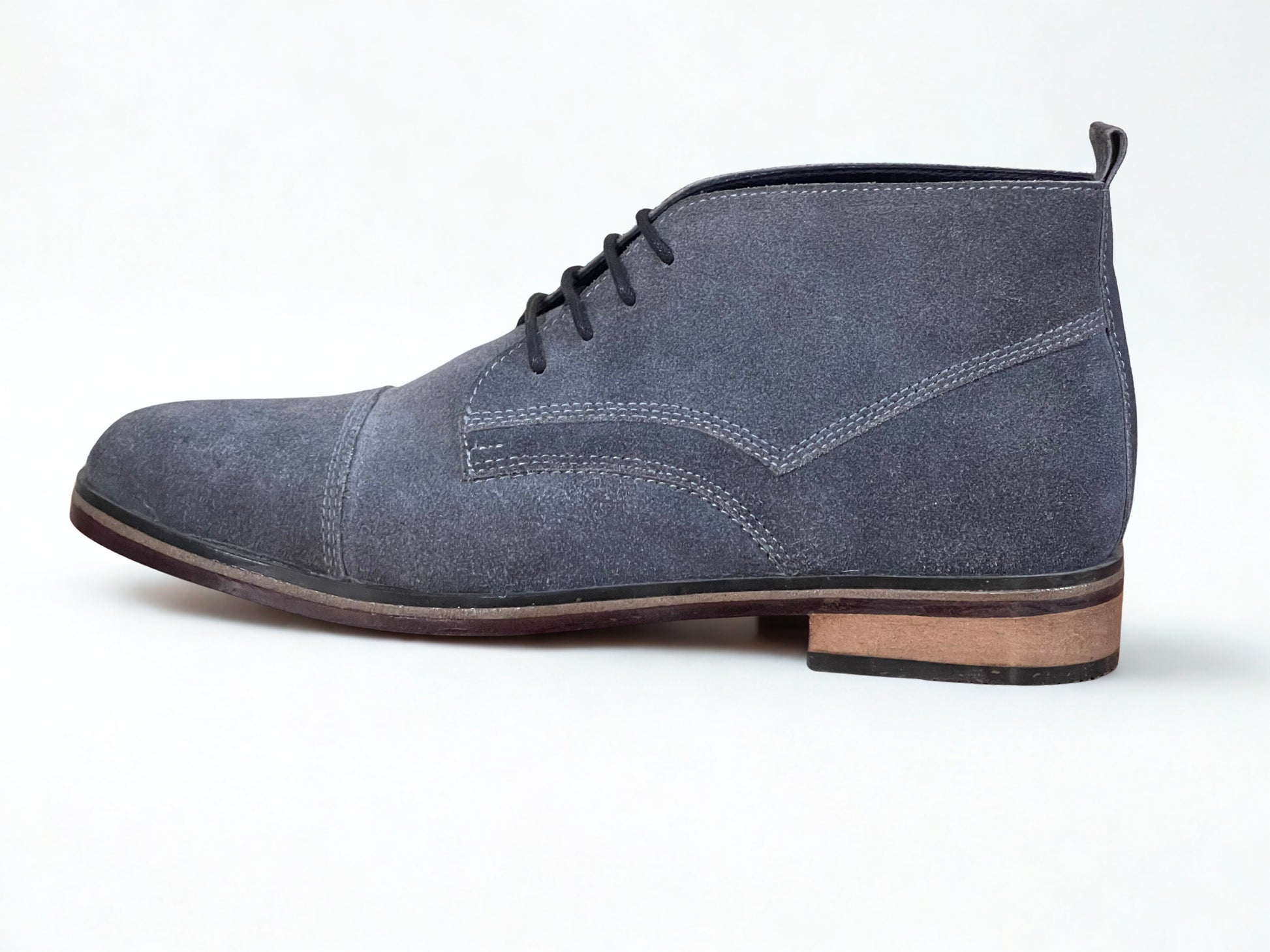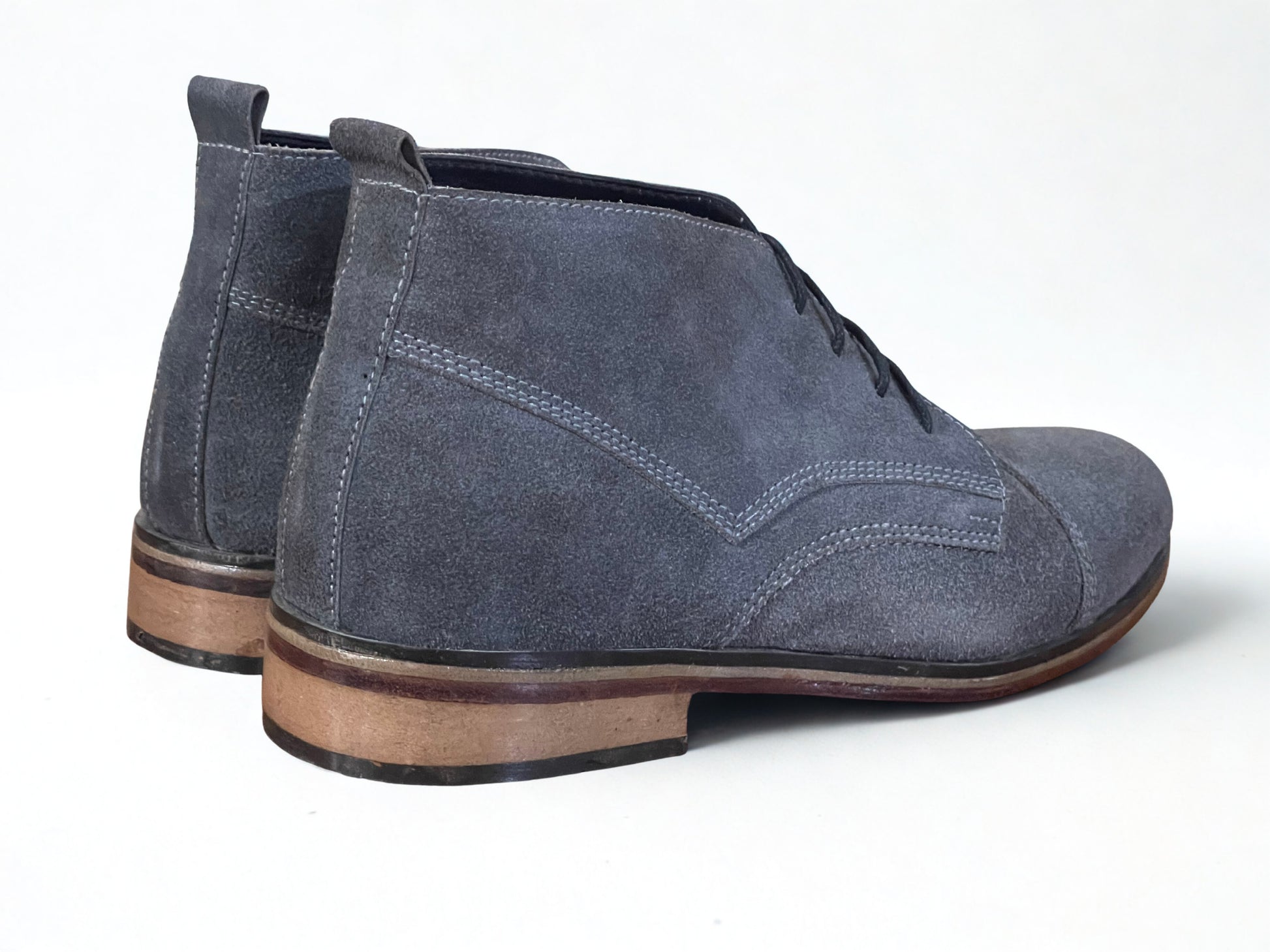Ashbourne is a chukka that wears its history with quiet pride. The distressed grey suede upper carries the soft marks of lived moments, subtle variations in tone and texture that deepen into a personalized patina as you move through days and seasons. Handcrafted by a small team of artisans, each pair is built with Blake-stitched precision so the silhouette stays slim and the walk feels naturally flexible.