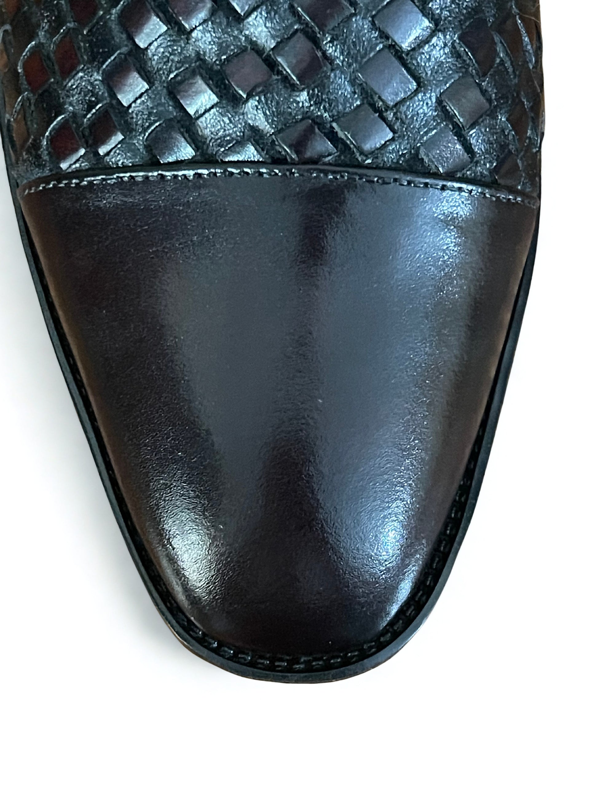 In a world chasing perfection, Marlow Weave celebrates the artistry of imperfection a harmony between texture, tone, and time. Each pair is a study in contrasts: the brushed leather, deep and reflective, meets the hand-woven vamp where every strand is guided by the craftsman’s intuition.