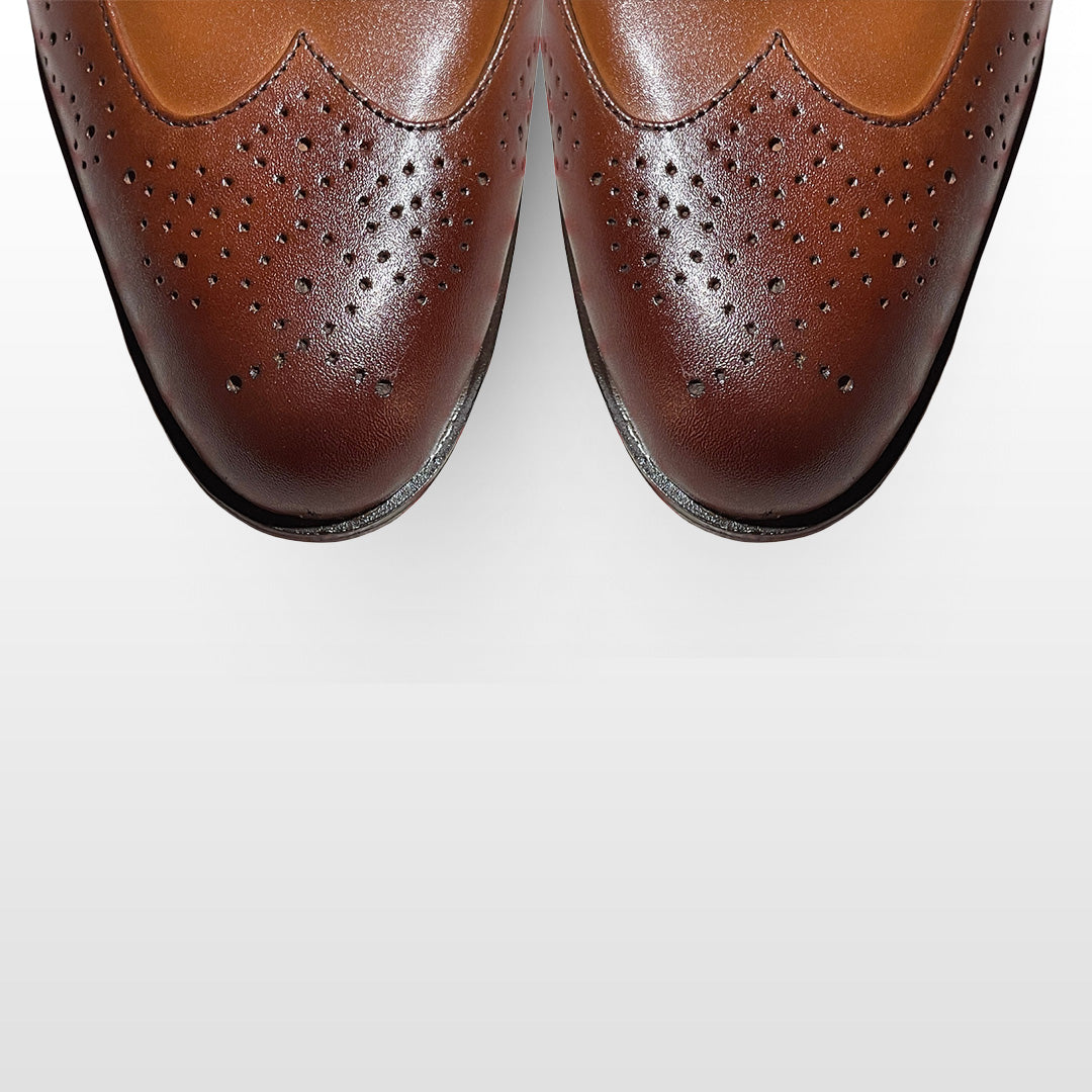 Design: Classic wingtip brogue pattern with perforated detailing.