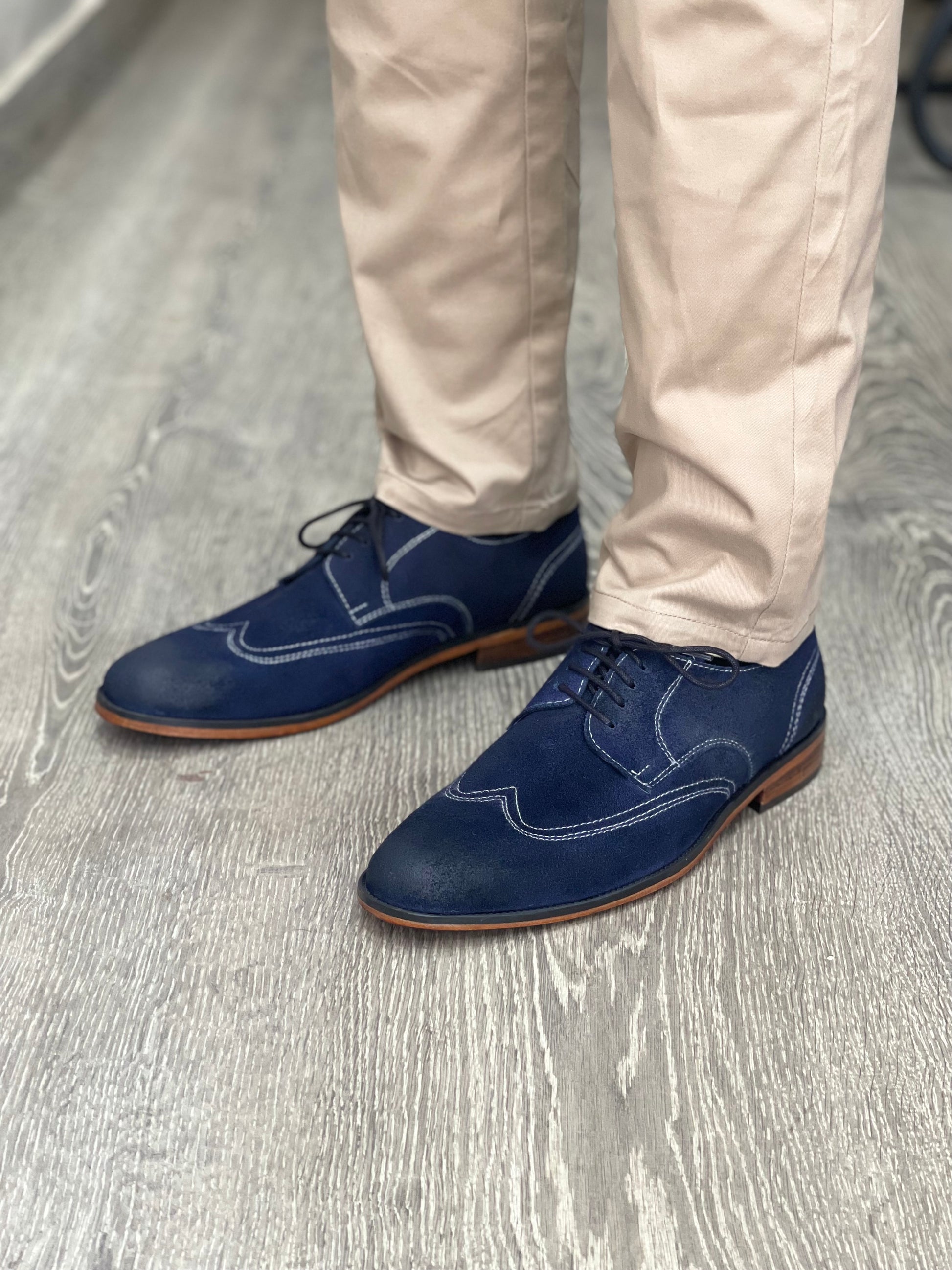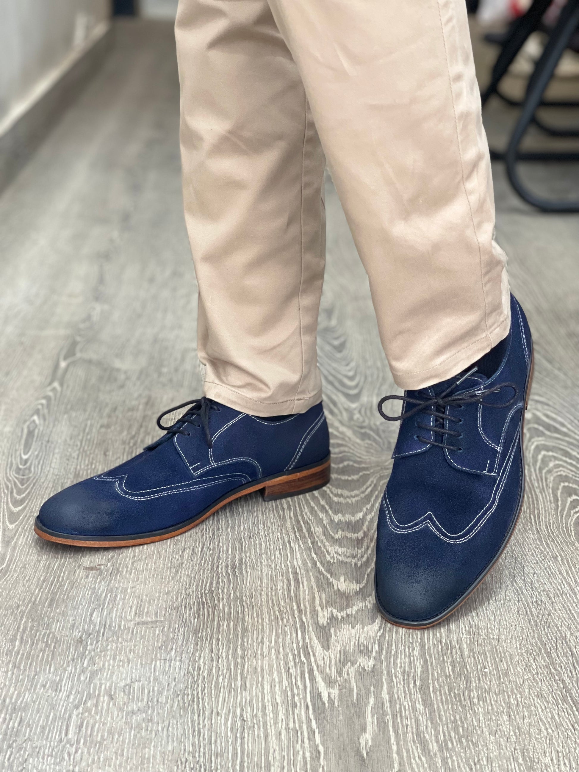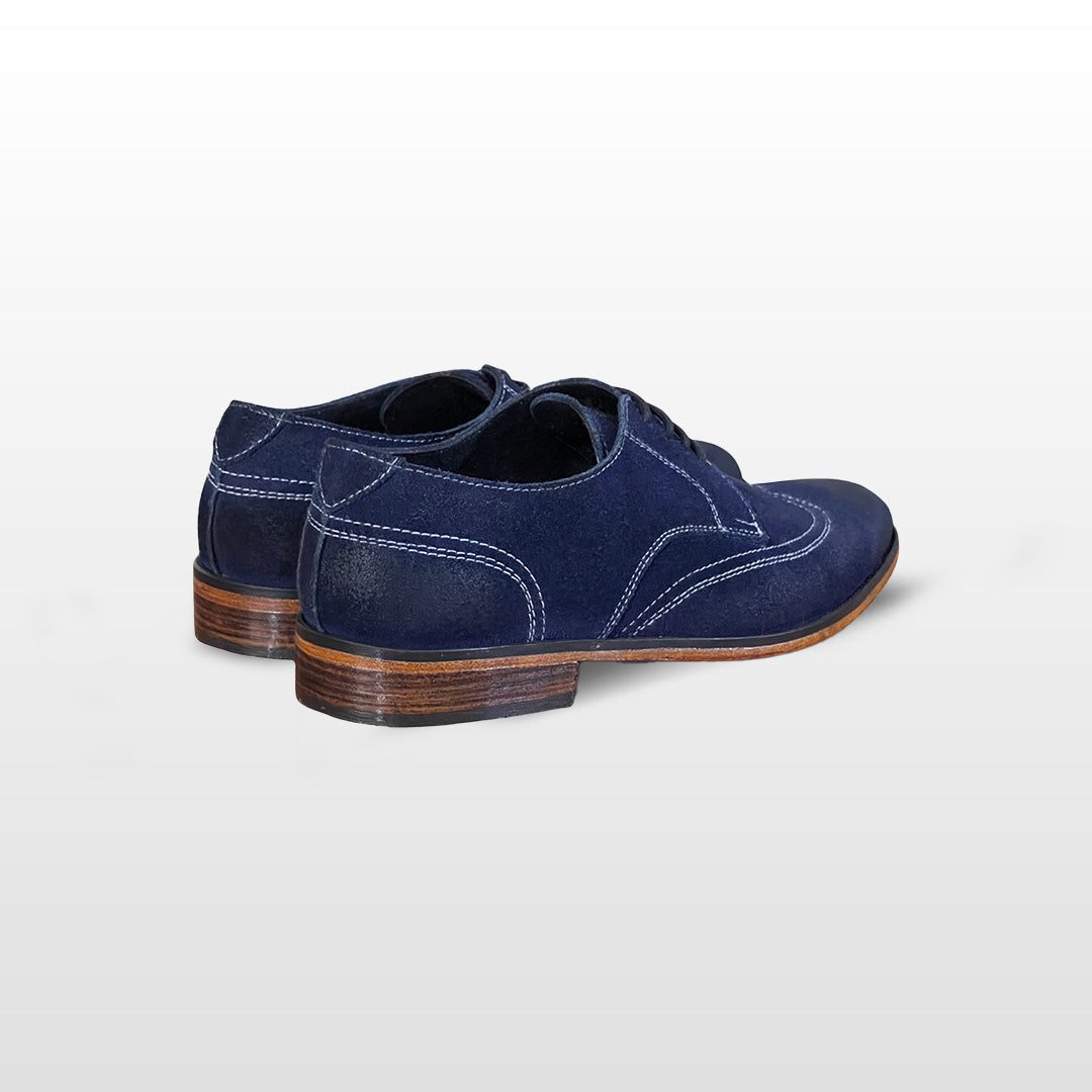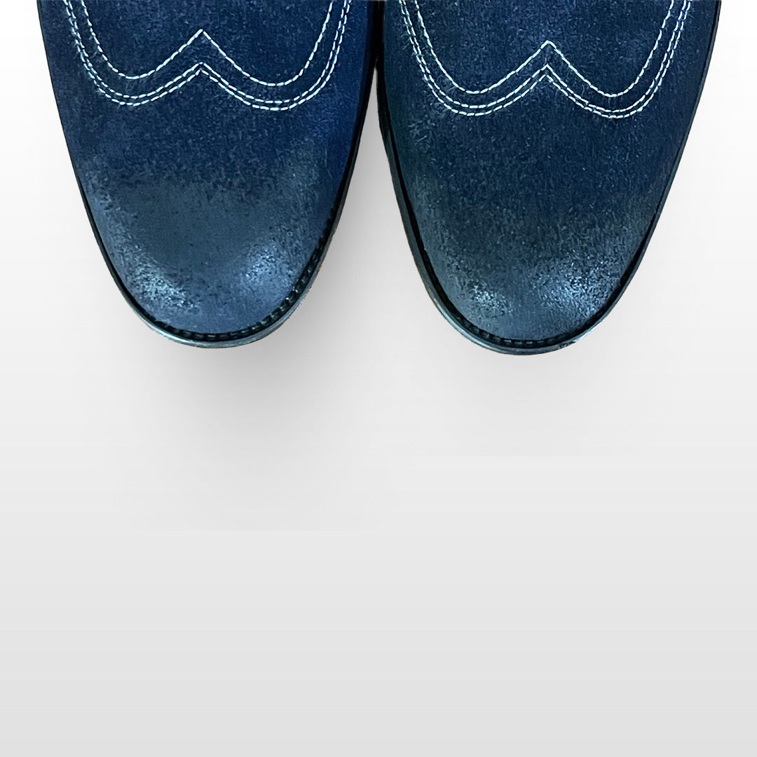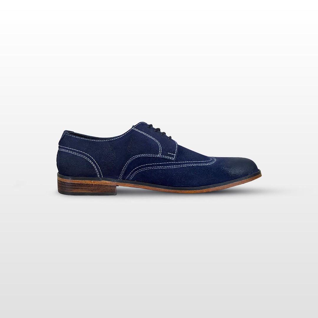 The open-laced construction speaks of ease and adaptability, while the contrast-stitched wingtip crafted in one seamless panel embodies unity and refined balance. Its deep blue suede evokes oceanic depth, subtly shifting with light and wear, revealing character with every step.