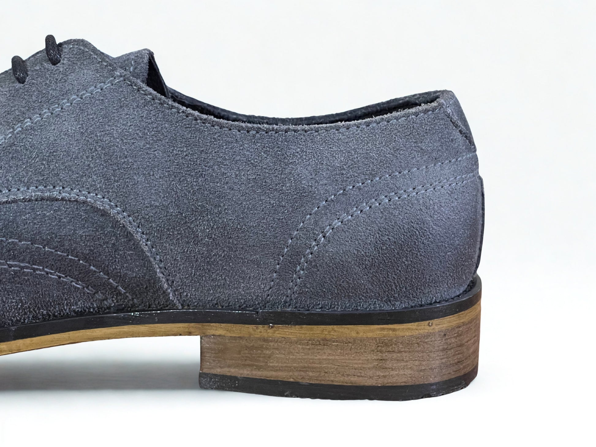 The open-laced construction speaks of ease and adaptability, while the contrast-stitched wingtip crafted in one seamless panel embodies unity and refined balance. Its deep gray suede evokes oceanic depth, subtly shifting with light and wear, revealing character with every step.