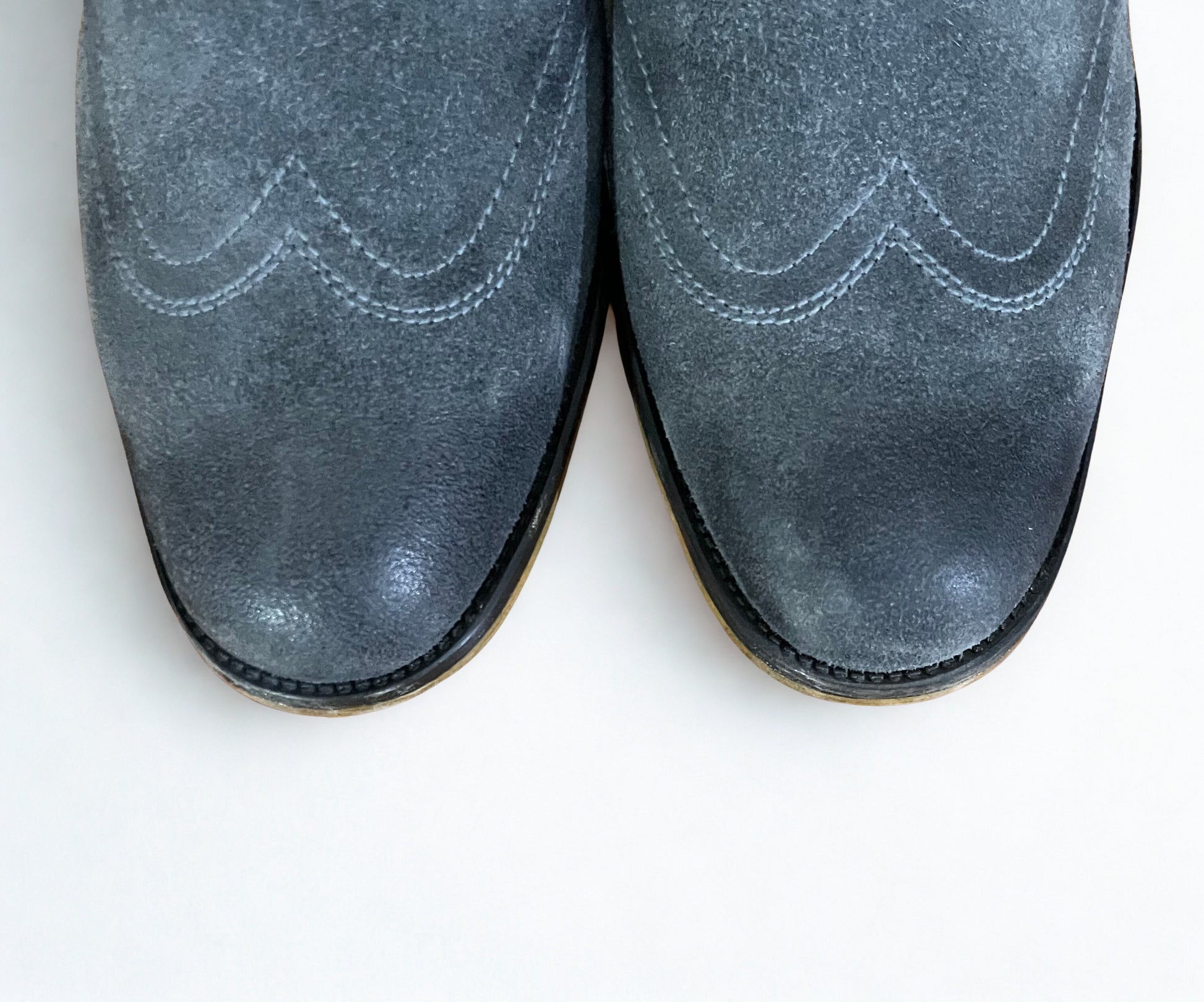 Upper: Distressed Gray Suede with Single Panel Wing Design